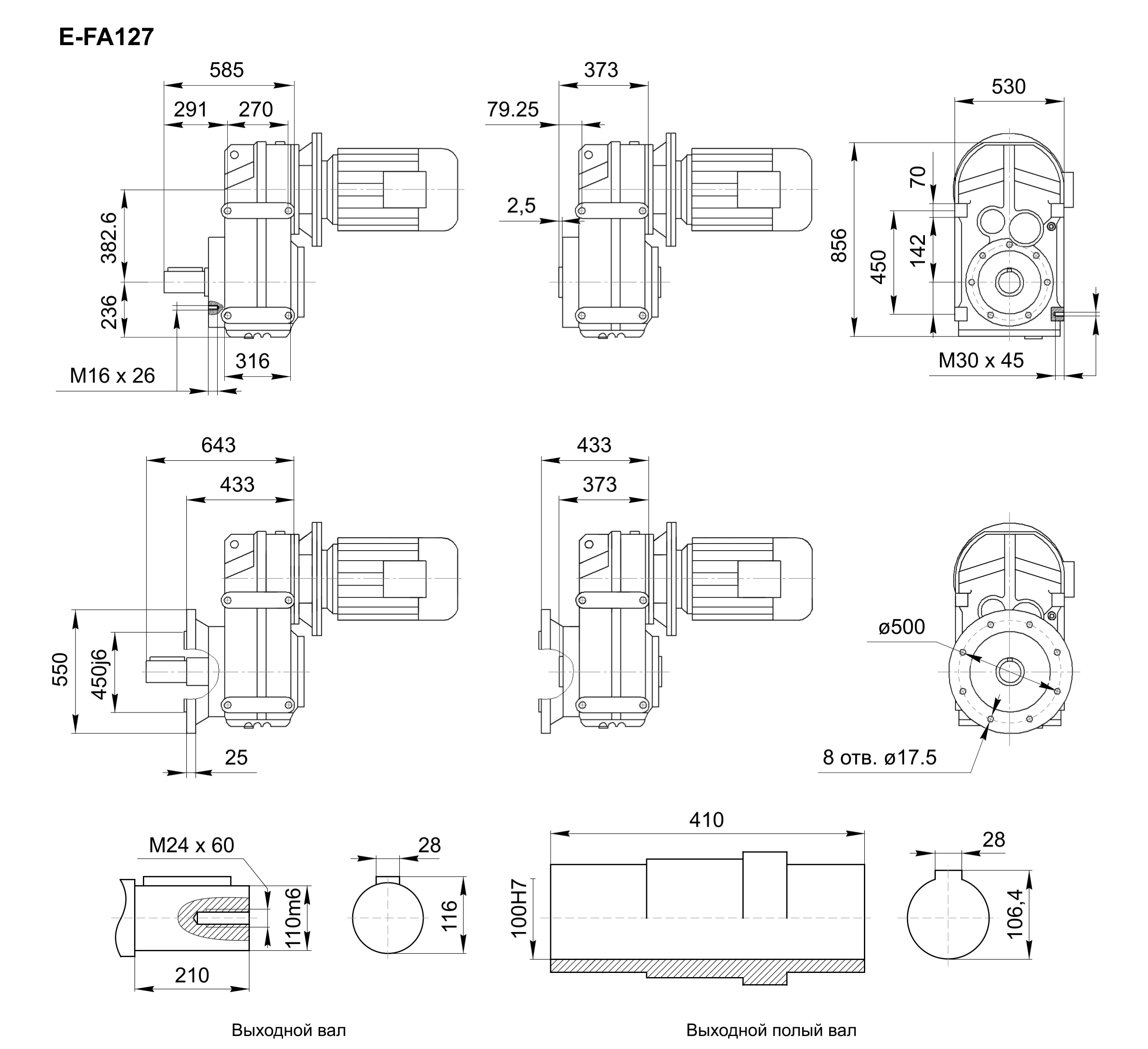 E-FF107 тип и габаритный размер 2-ой (выходной) ступени редуктора