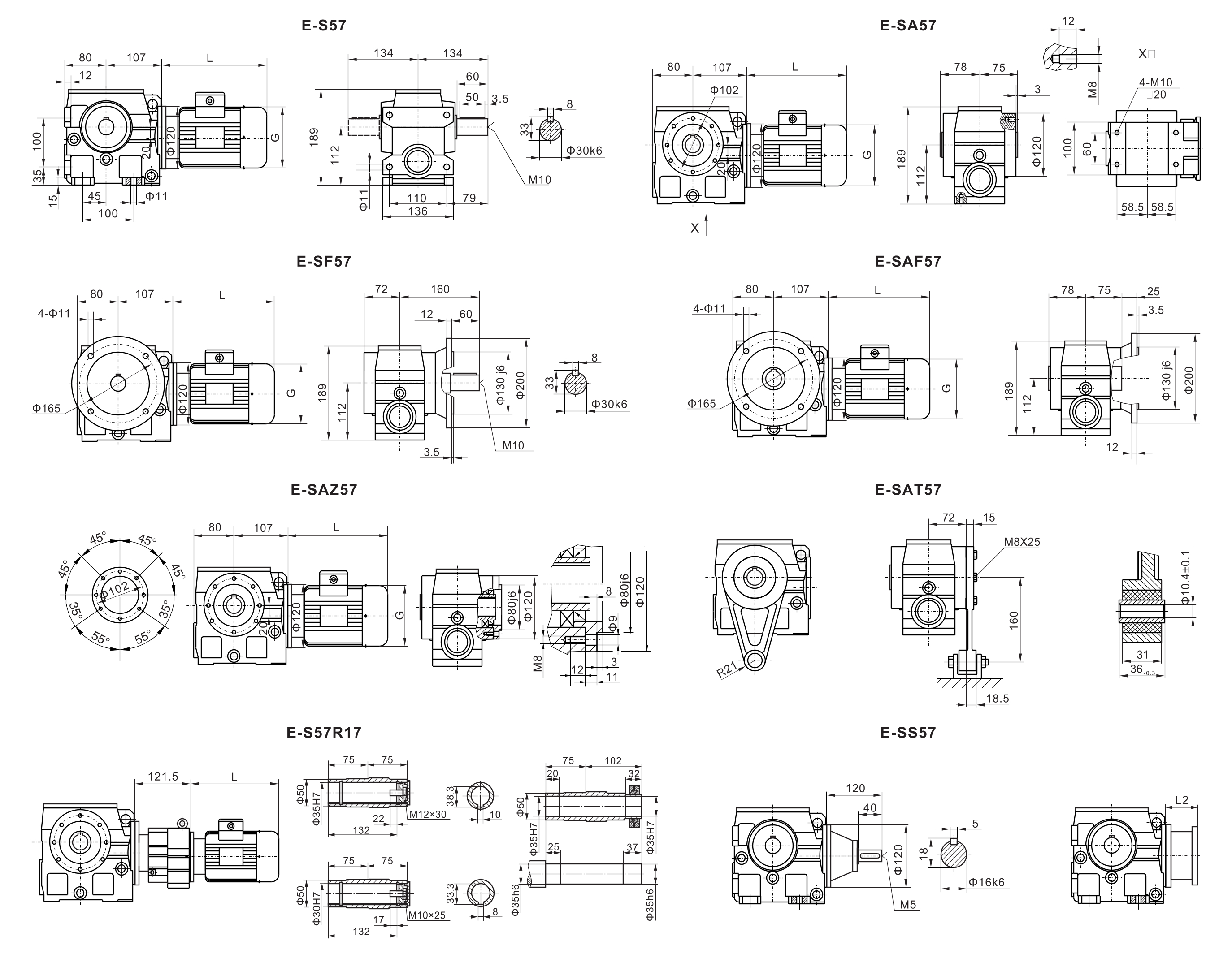 E-SF37 тип и габаритный размер редуктора