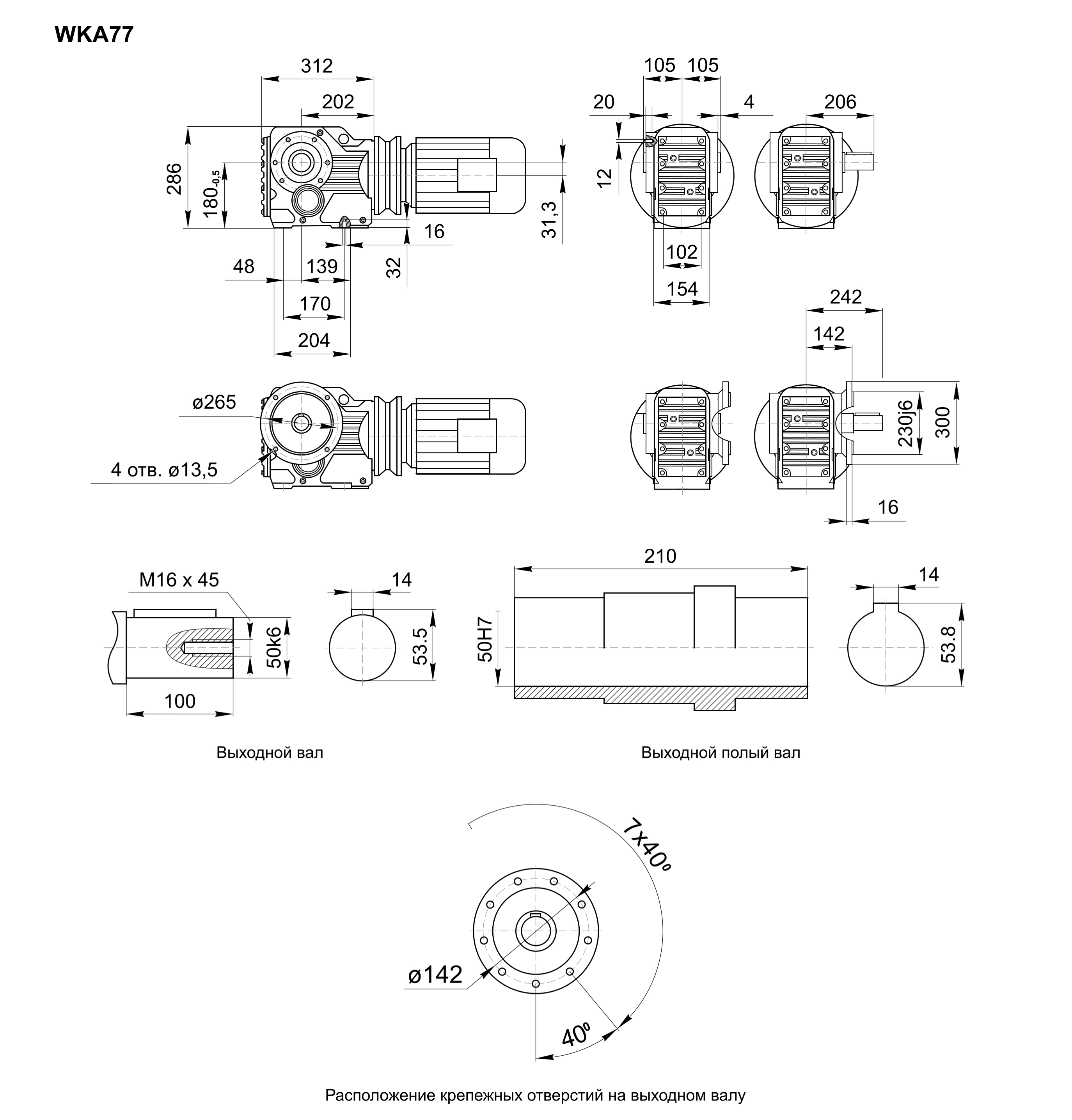 Мотор-редуктор WK77-Y 0.75KW-4P-97,05-M4-90°