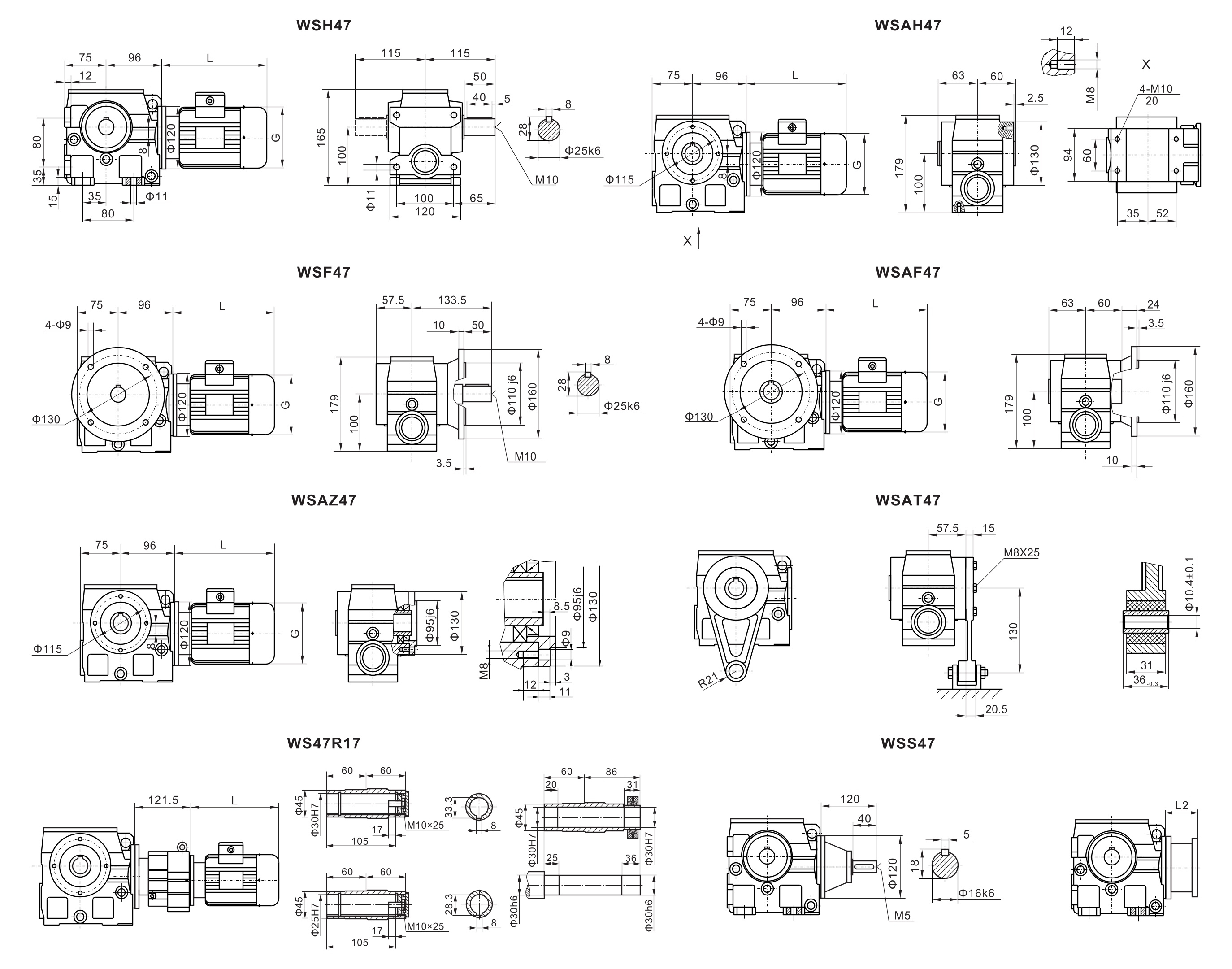 Мотор-редуктор WSH47 Y 0.55KW-4P-15,12-M3-270°