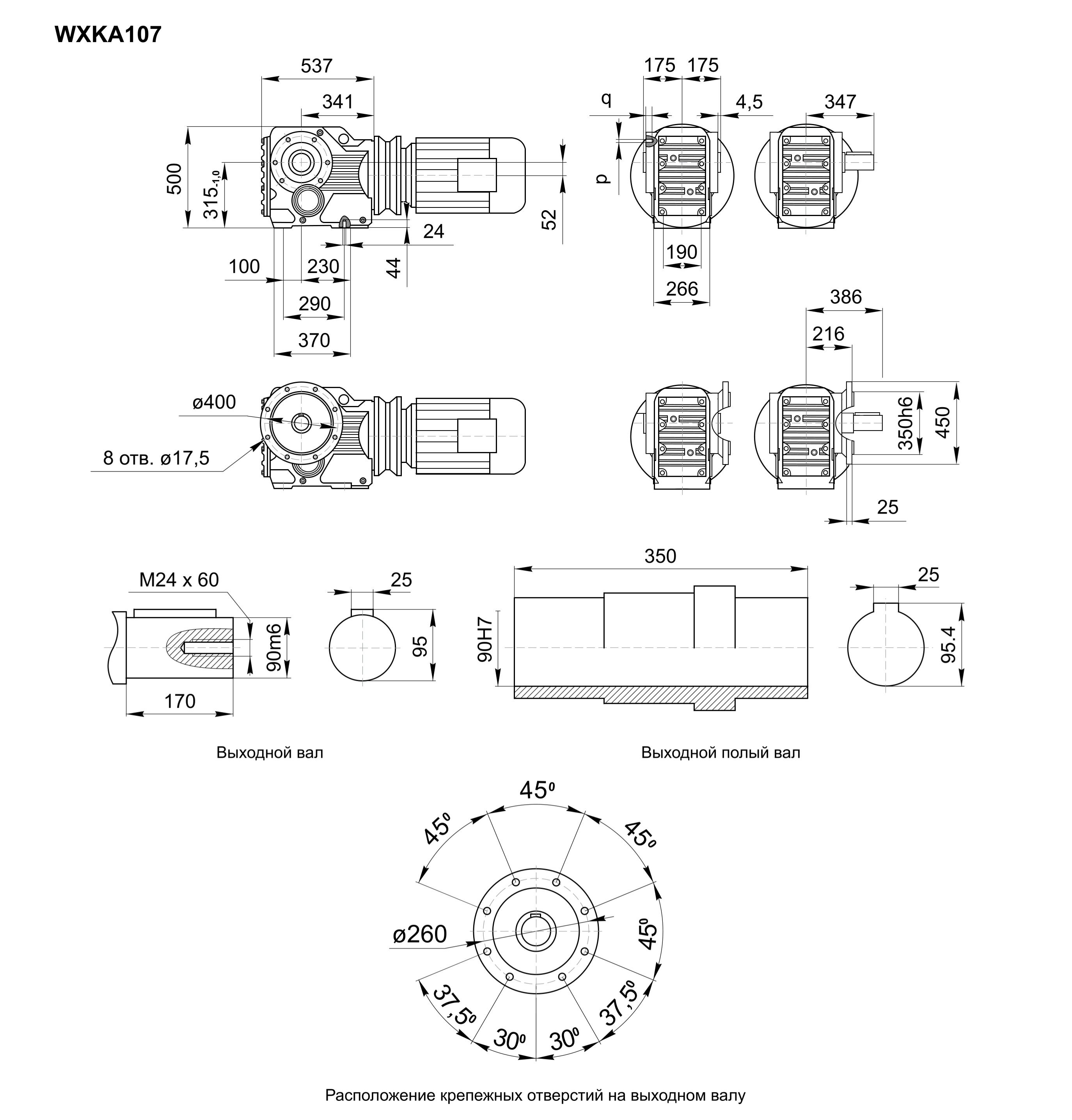WXKAZ77 тип и габаритный размер 2-ой (выходной) ступени редуктора