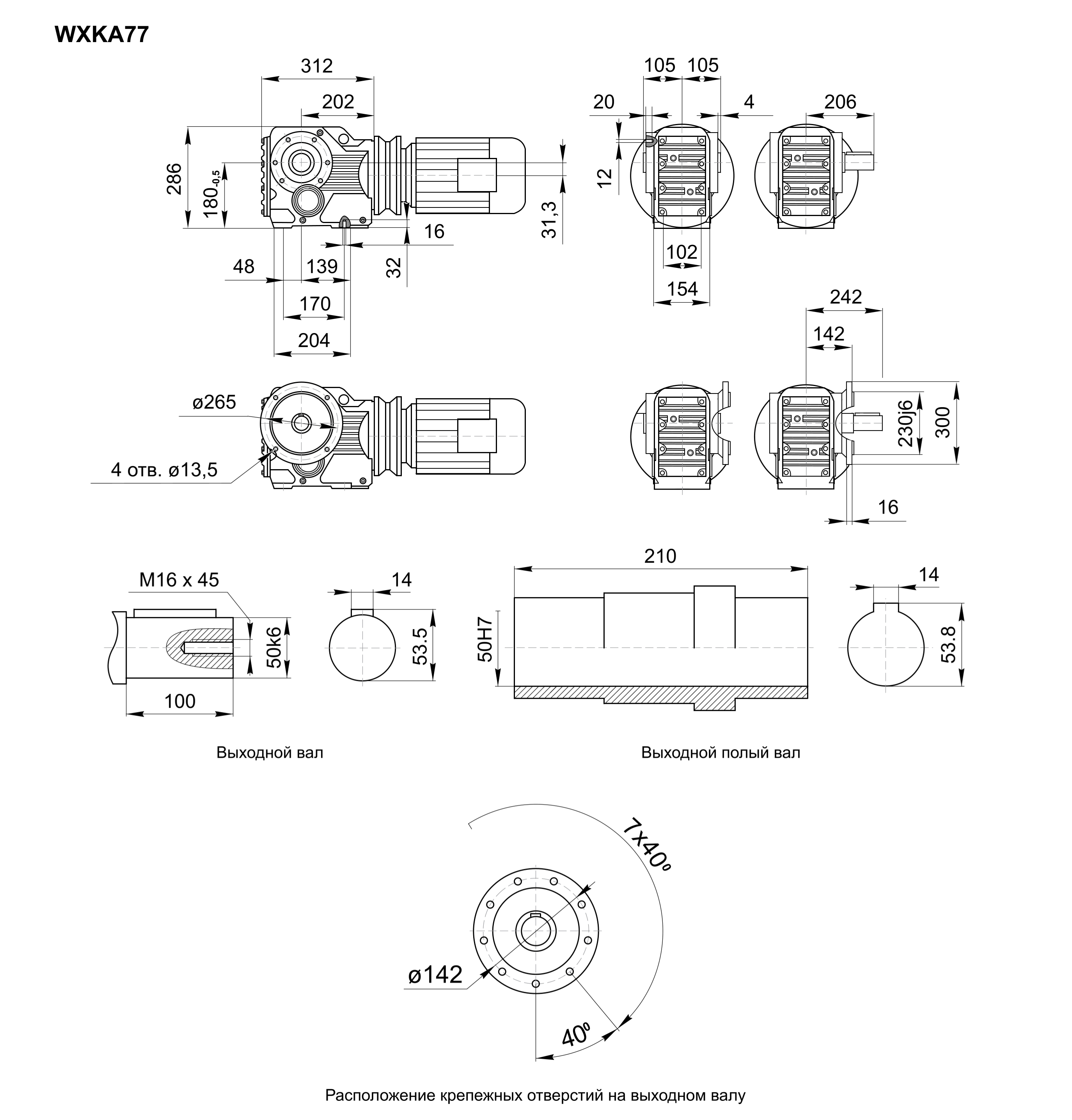 WXKAZ77 тип и габаритный размер 2-ой (выходной) ступени редуктора