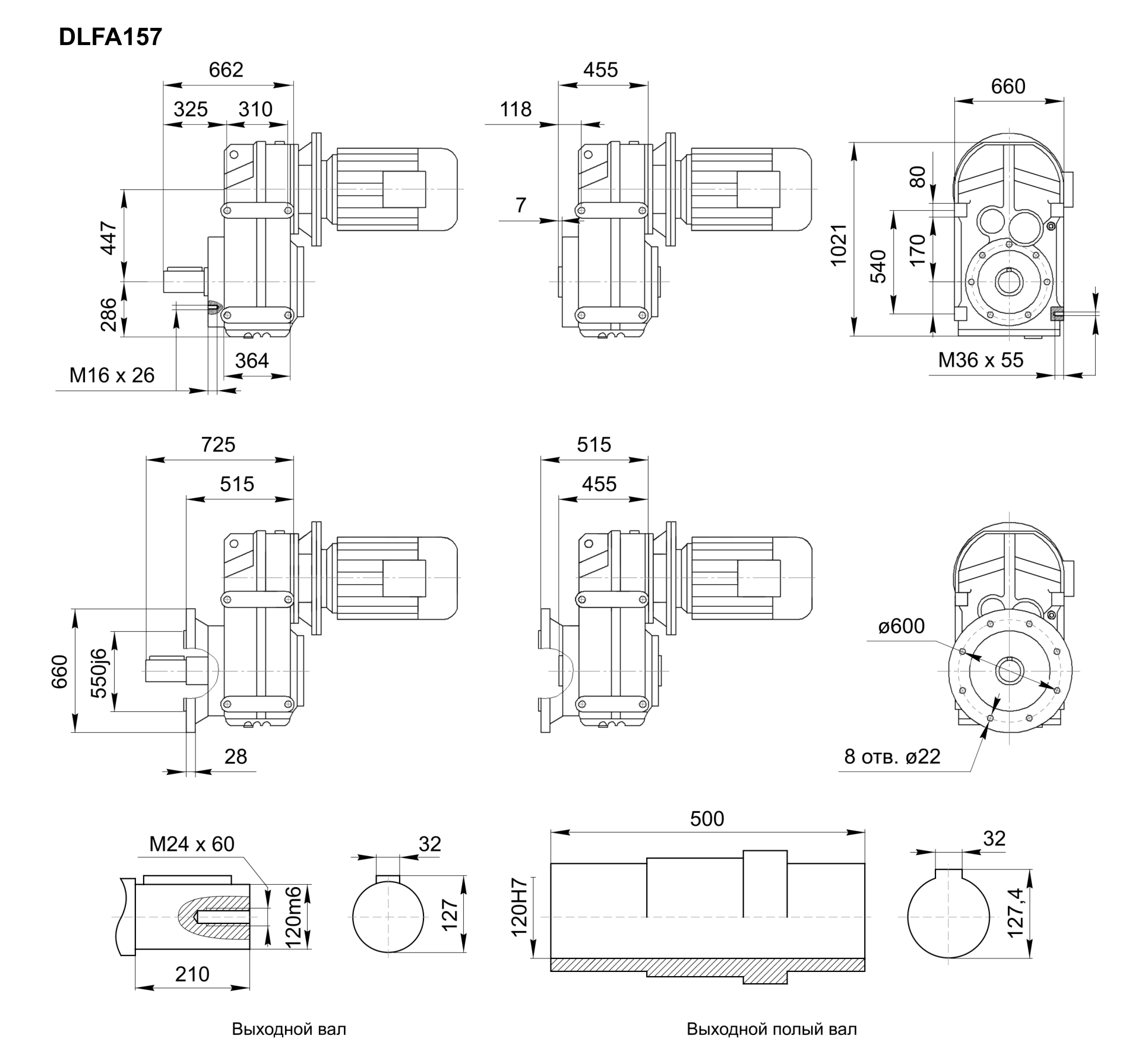 Мотор-редуктор плоско-цилиндрический DLFA157-Y160-4P-12,44-M3-180-4- IEC
