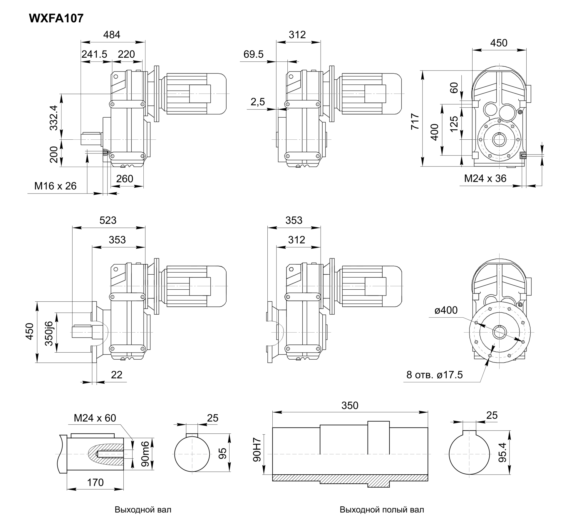Мотор-редуктор WANSHSIN WXFAF107-WS S-18,5KW-4-33,79-M3-270°